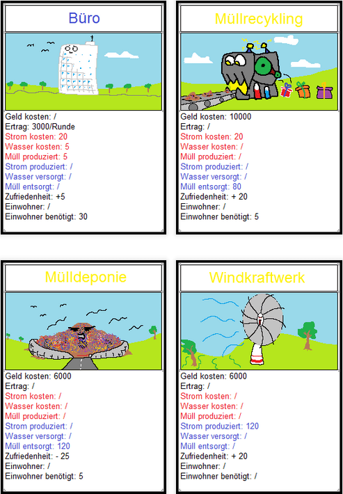 We had the task to recreate a video game into a board game. As a group we decided to choose City Skylines for this purpose. We carved a board from foam for four players where there could place little blocks as buildings. Information for the buildings were printed on paper cards for the player to manage there rescources. The player who is most efficent in one sector is rewarded with a victory point and the player with the most victory points wins the game.